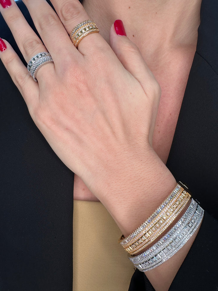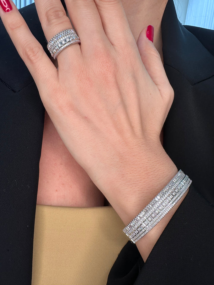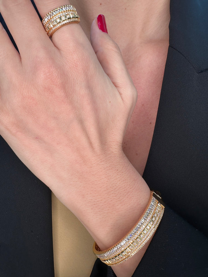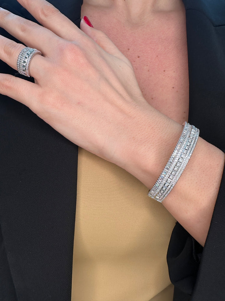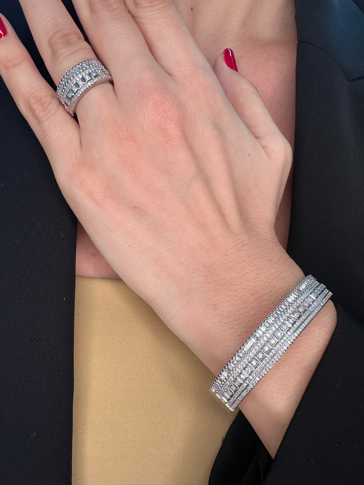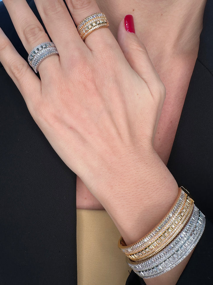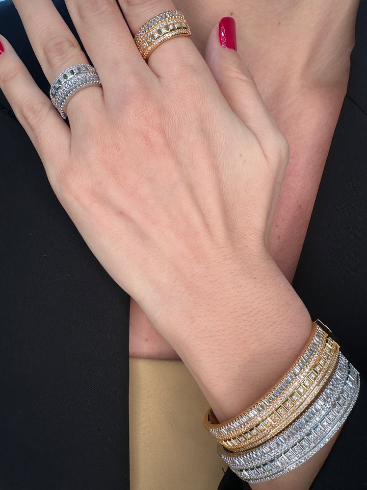 This exquisite Sousou bangle is silver-plated and crafted with exceptional quality, featuring sparkling cubic zirconia stones for a brilliant shine. Available in both silver and gold plating, it offers a refined choice for elegant accessorizing.it comes as a set bangle with ring