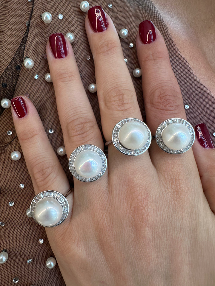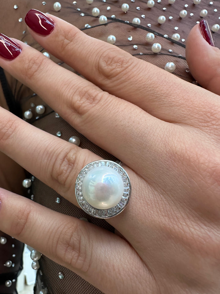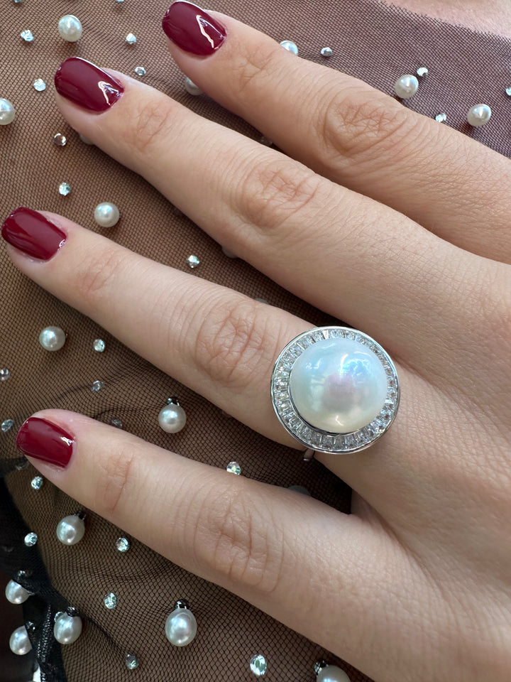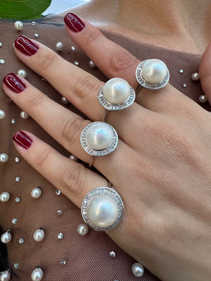This elegant Big Pearl Ring 02 features a sterling silver band adorned with a luminous mother-of-pearl pearl. The ring is designed with an adjustable band to ensure a perfect fit.