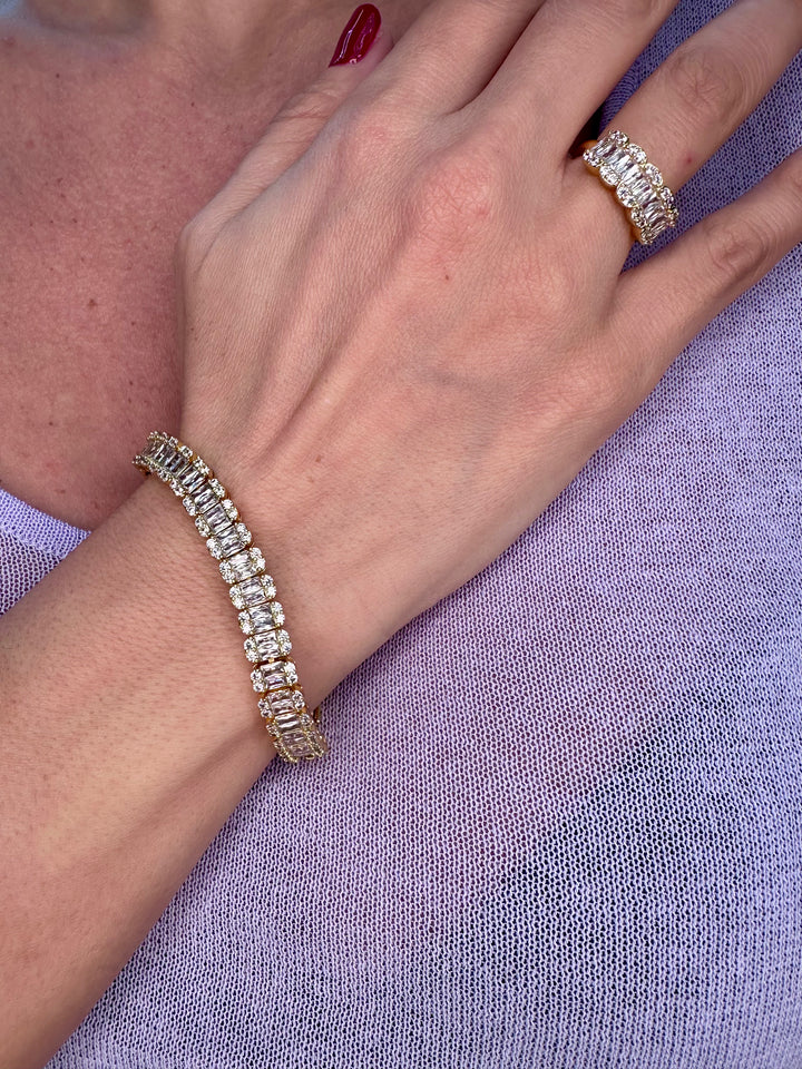 This baguette bracelet set includes a matching ring, exquisitely crafted with high-quality gold plating and adorned with dazzling cubic zircon stones for a refined, elegant look.