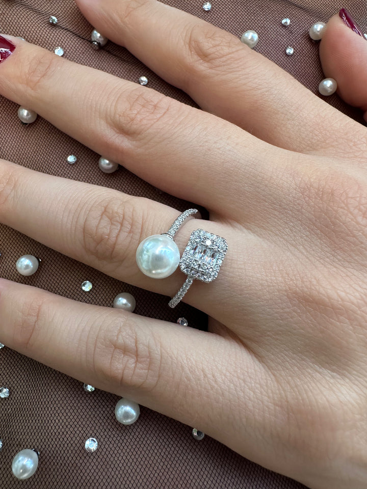 This elegant ring features a square-cut zircon and is silver plated. The adjustable size ensures a perfect fit for any wearer.