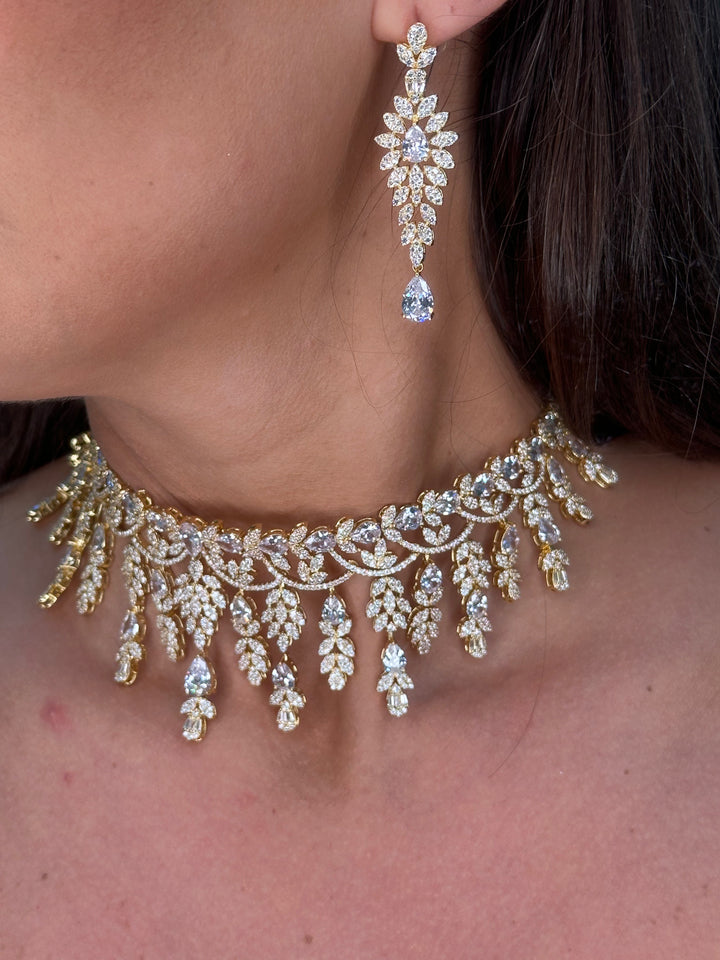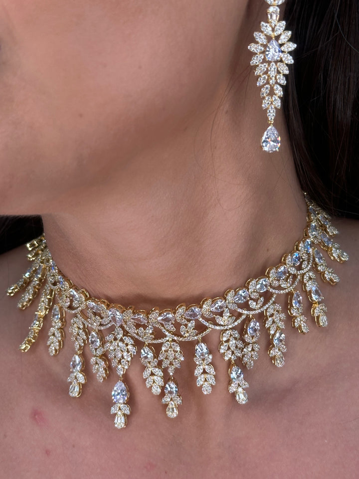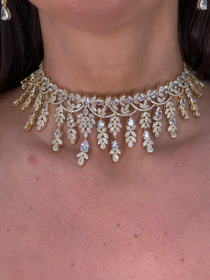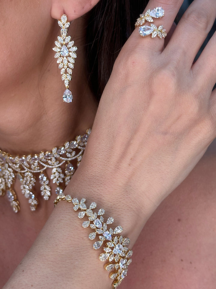 This exquisite full set features baguette-cut cubic stones in silver and gold plating, crafted with exceptional quality. Perfect for weddings, engagements, and special occasions, it shines brilliantly with a stunning necklace, earrings, bracelet, and ring included.