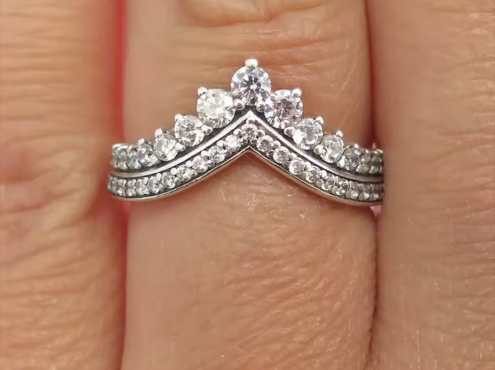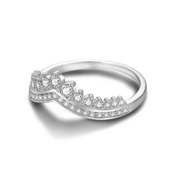 Elegant Princess Wish Crown Moissanite Engagement Ring for Women, featuring a V-shaped 925 Sterling Silver band adorned with lab-created diamonds.