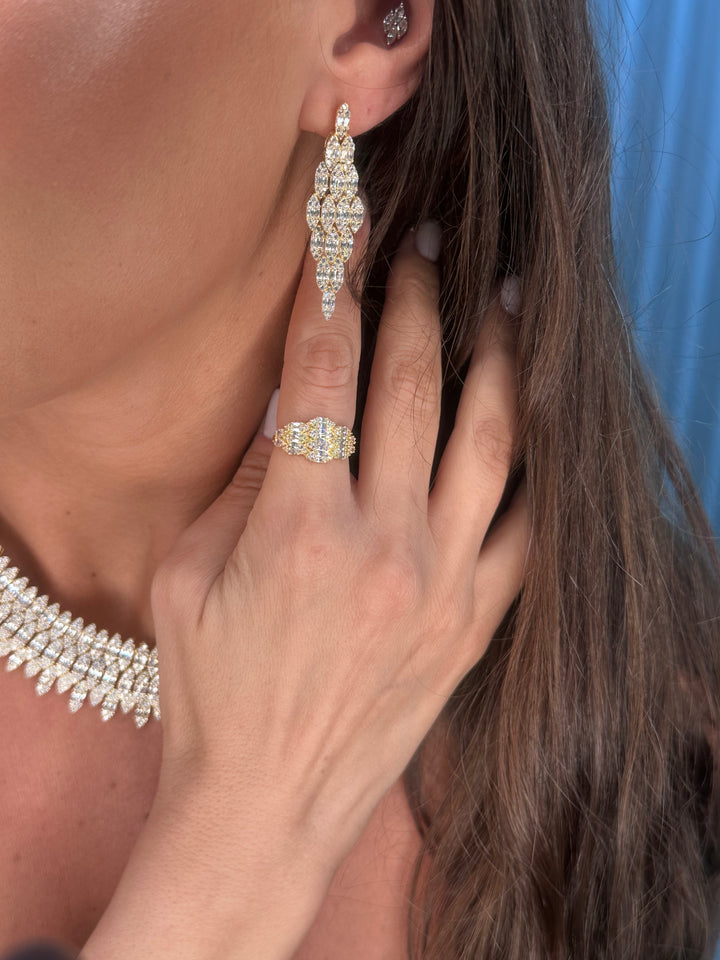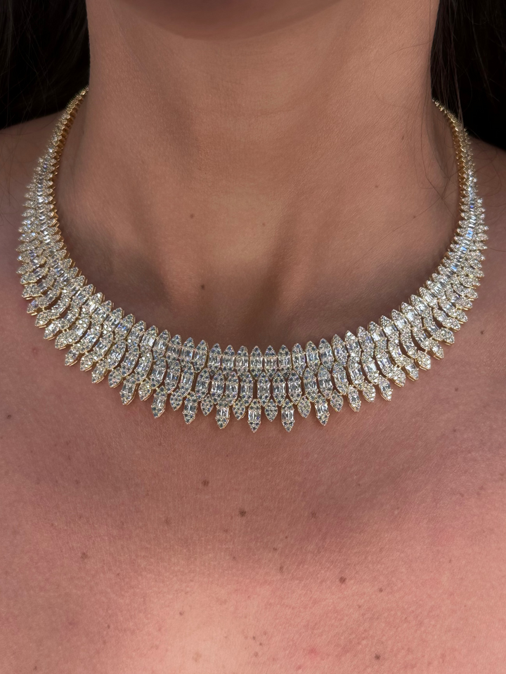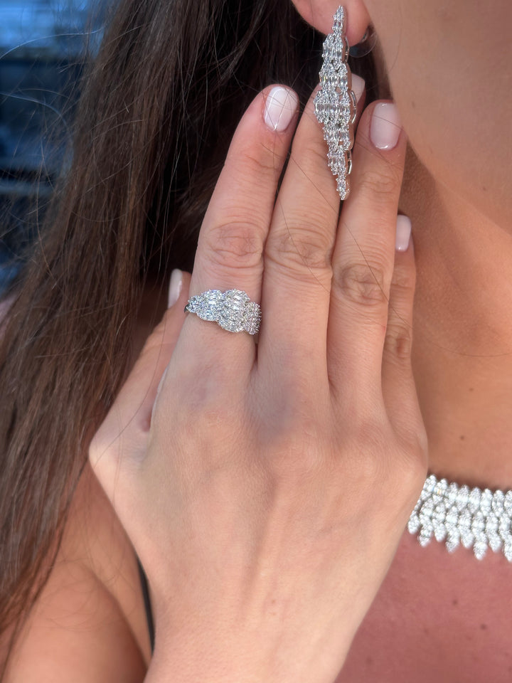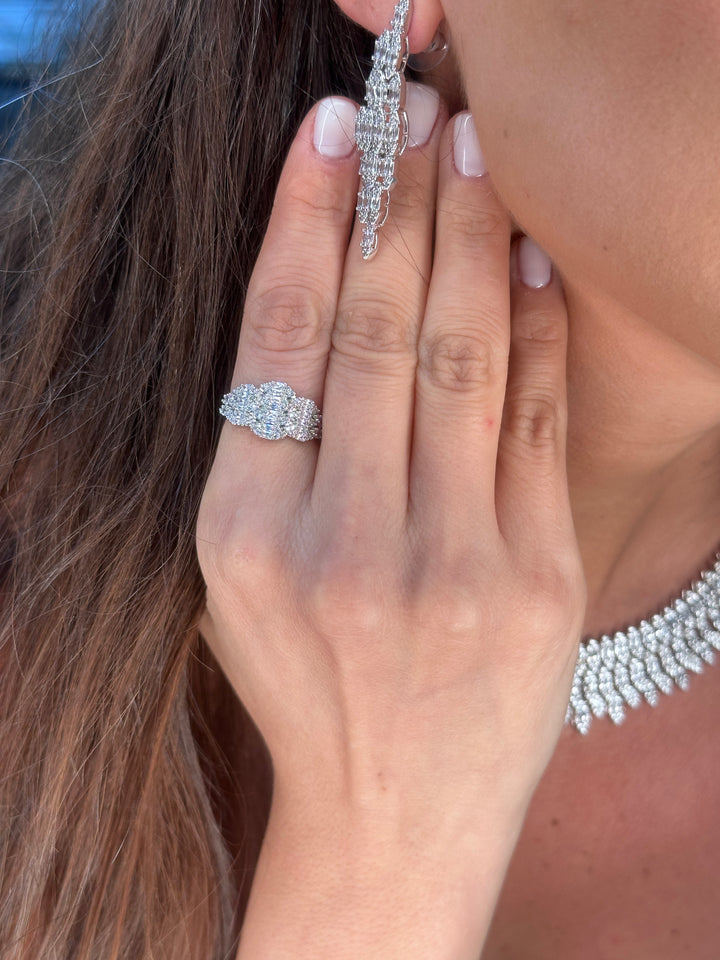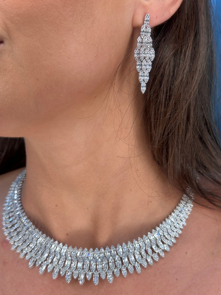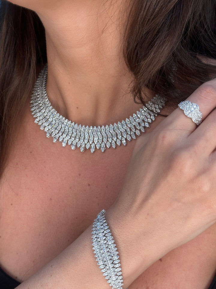 Diamond Look features a refined silver and gold-plated finish with exceptional brilliance. This elegant set includes four pieces: a necklace, bracelet, ring, and earrings, all crafted to a superior standard for a stunning, coordinated appearance.