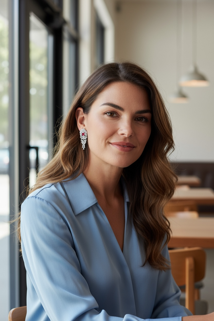 ارتقِ بأناقتك مع قرطنا الفاخر المُرصّع بحجر أحمر آسر. صُنع بدقة متناهية، يُضفي هذا القرط لمسةً من الرقي والأناقة على أي إطلالة. إنه الإكسسوار المثالي لإطلالة مميزة في أي مناسبة أو تجمع راقي.