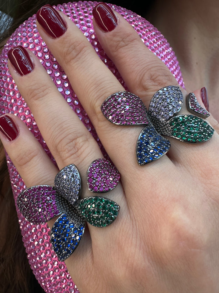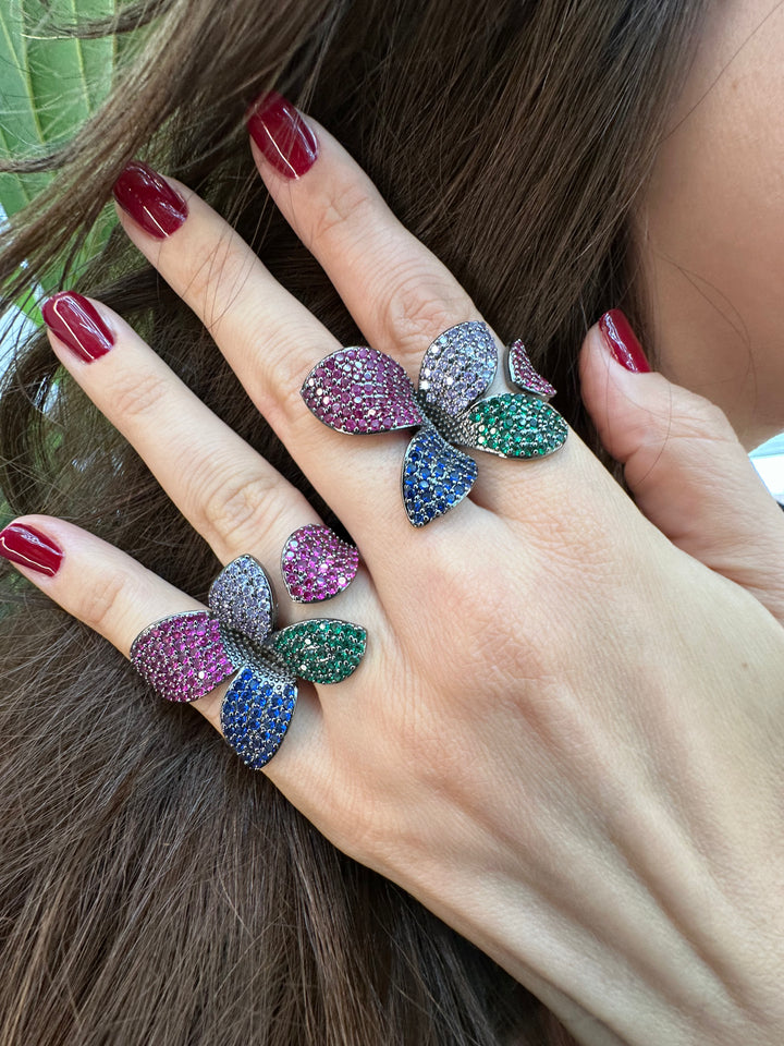 اكتشف المجموعة الجديدة الرائعة من الخواتم متعددة الألوان الرائعة والحيوية من فلورا بيلا.