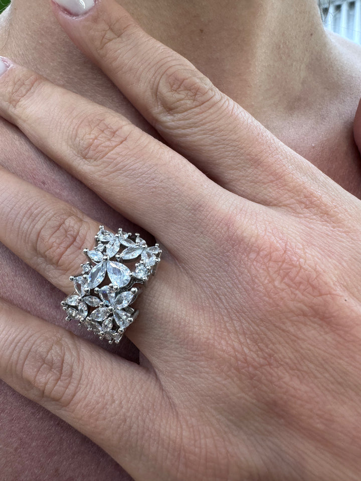 خاتم الزهور الرائع هذا يُضفي لمسةً راقيةً على أي مجموعة إكسسوارات مصنوعة من الذهب المطلي والفضة الإسترلينية. صُنع بتفاصيل دقيقة، وأناقة رقيقة تُجسّد جمال الطبيعة. مثالي لأي مناسبة، سيُضفي هذا الخاتم لمسةً مميزةً على إطلالتك ويزيد من أناقتك. S925