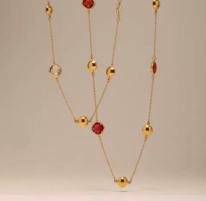 This elegant glass necklace for women features a stainless steel chain and charm, making it perfect for weddings or everyday wear. Crafted for durability and style, it complements any outfit with a refined touch.