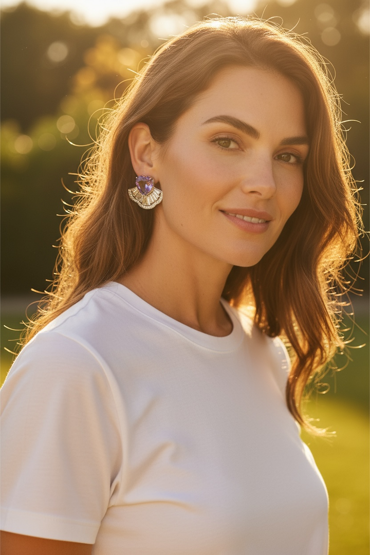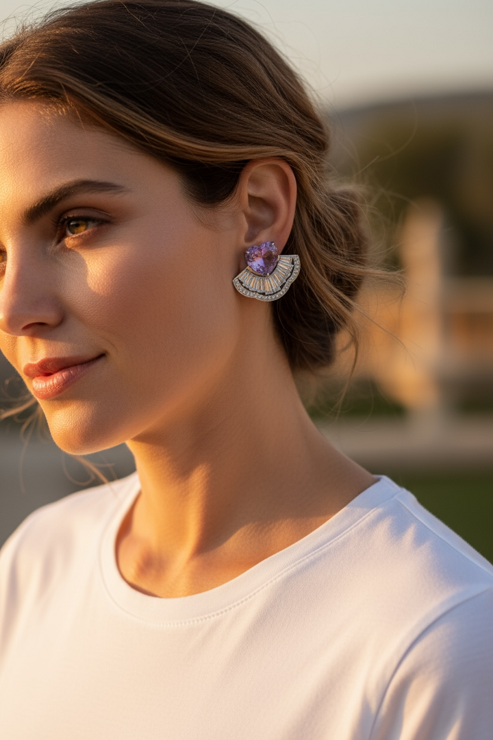أقراط مرصعة على شكل قلب أنيقة لحفلات الزفاف النسائية مع زركونيا مكعبة كاملة، مثالية لحفلات الزفاف.