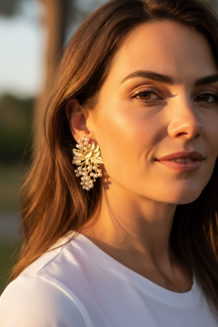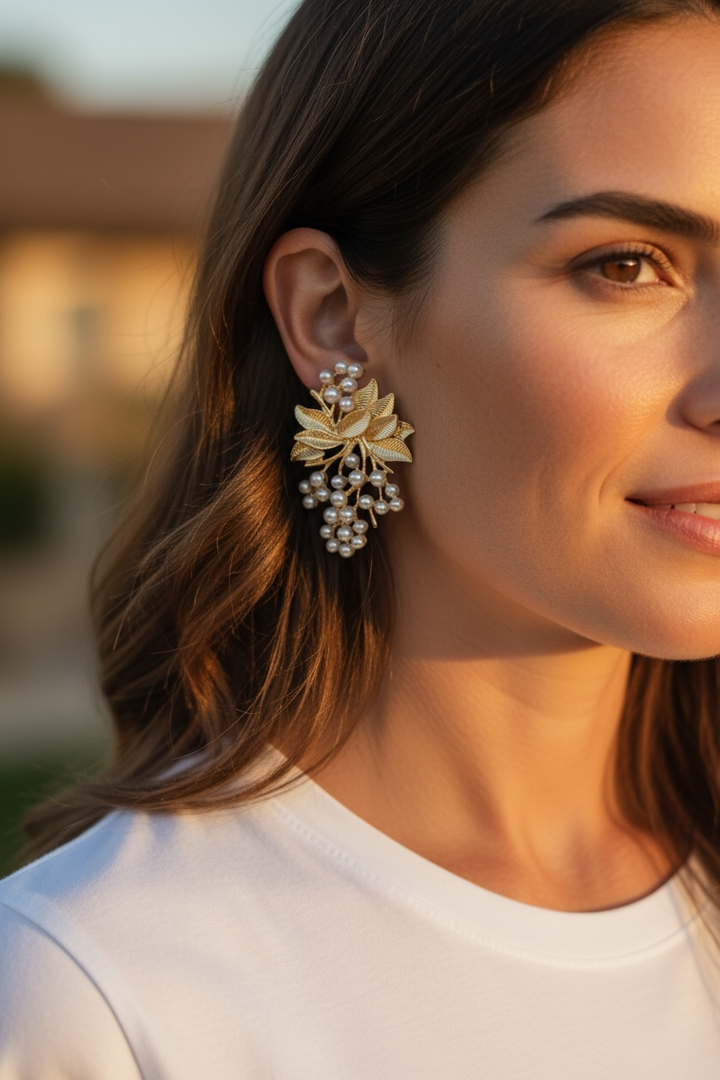 Pearl flower This elegant silver-plated earring features dazzling zircon stones, offering exceptional shine and premium quality. Perfectly suited for weddings, engagements, and sophisticated gatherings.