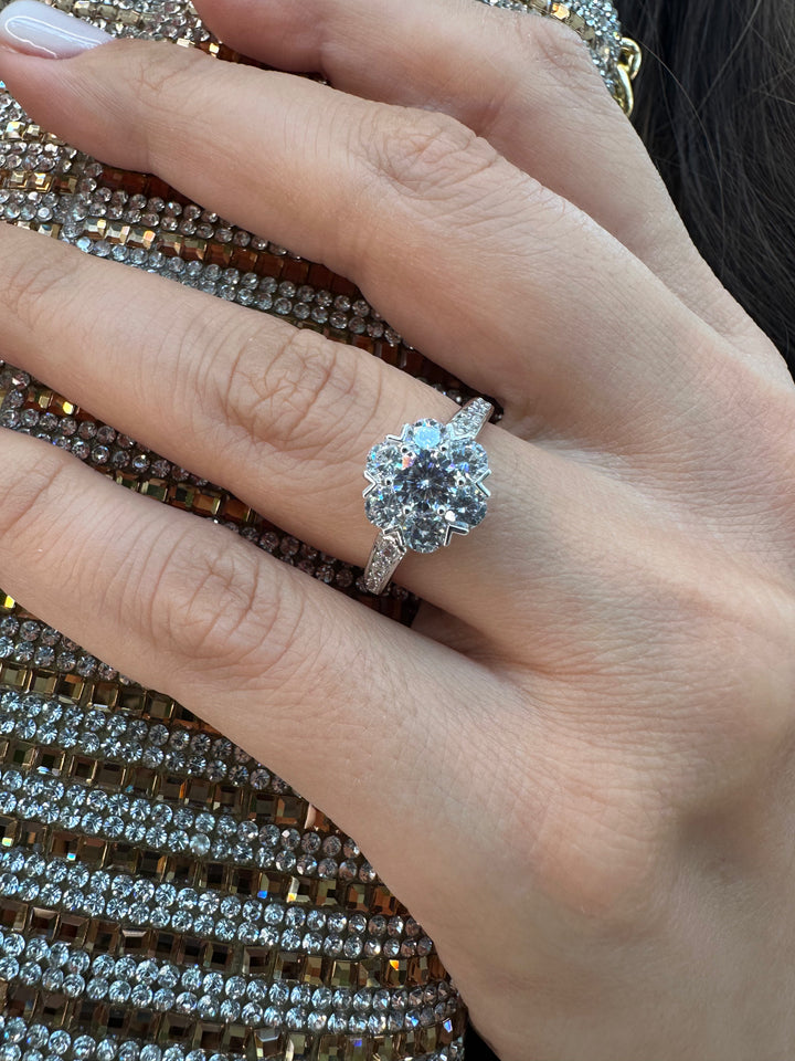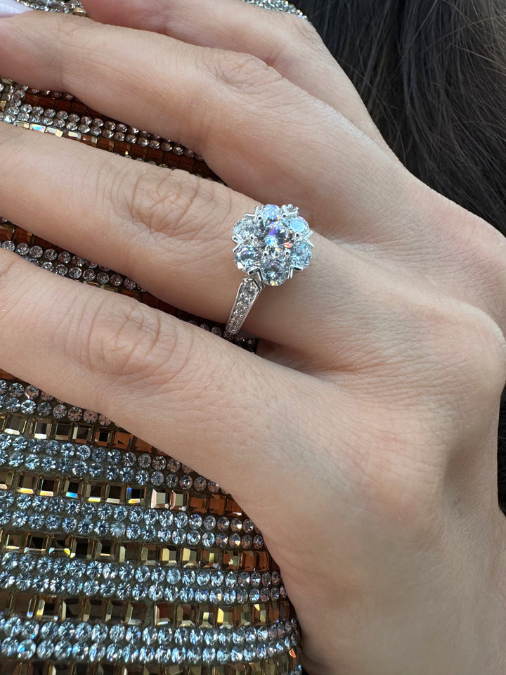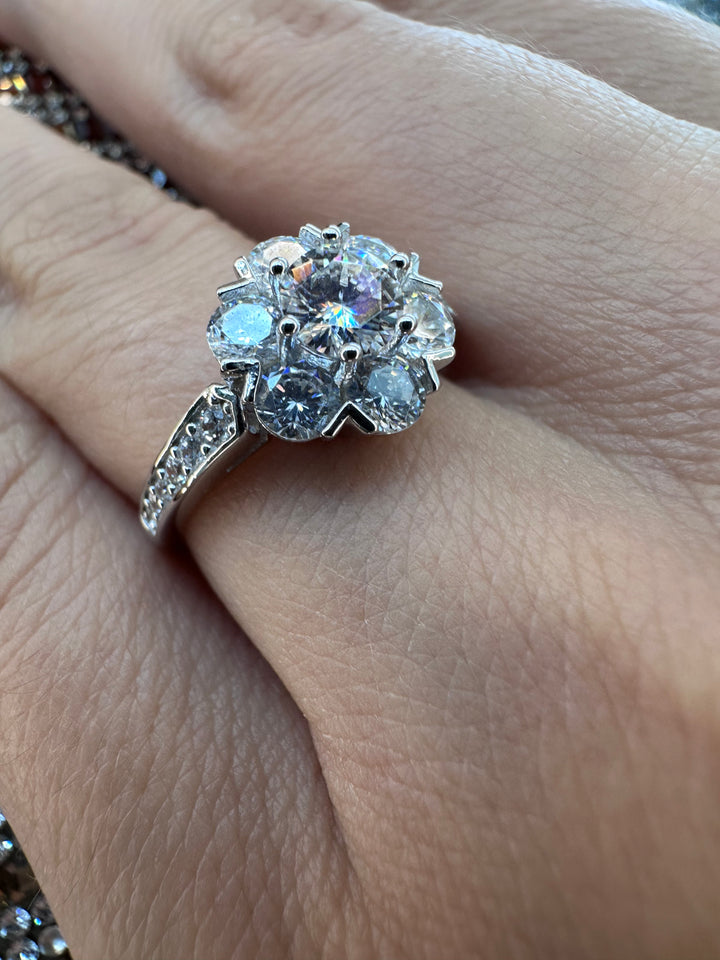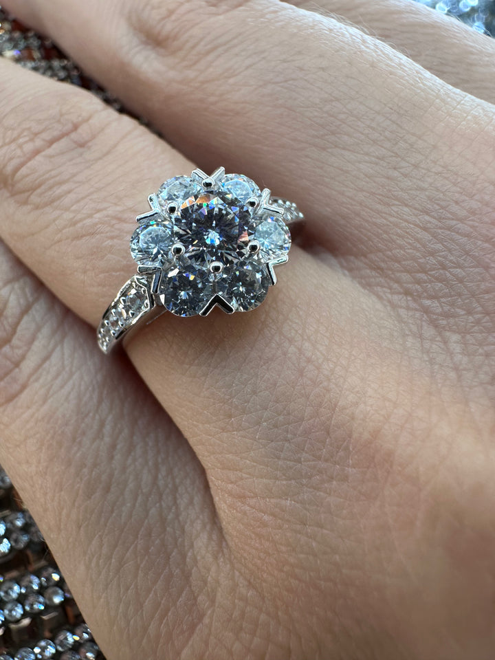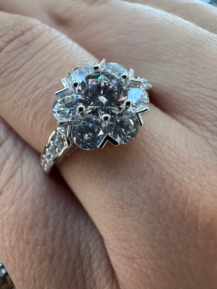 This exquisite flower-inspired ring features a high-quality moissanite stone set in sterling silver (S925). The elegant design is complemented by an adjustable band, ensuring a perfect fit for any finger.