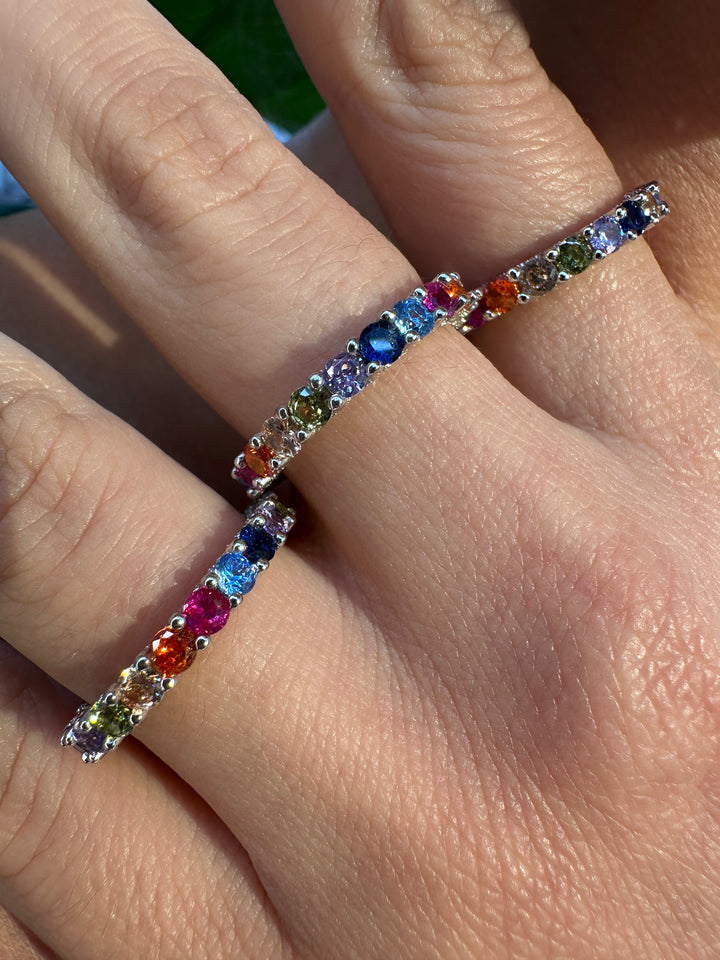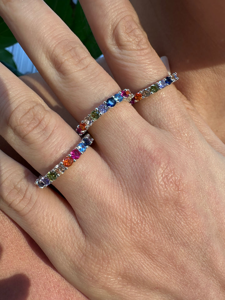 استمتعي بفخامة لا تُضاهى مع خاتمنا الرائع من الفضة الإسترلينية عيار 925. تتميز هذه القطعة الرائعة بتصميم ماسي كامل ولمسات زركون مكعبة متعددة الألوان، مثالية للمرأة الراقية التي تُقدّر أرقى ما في الحياة.