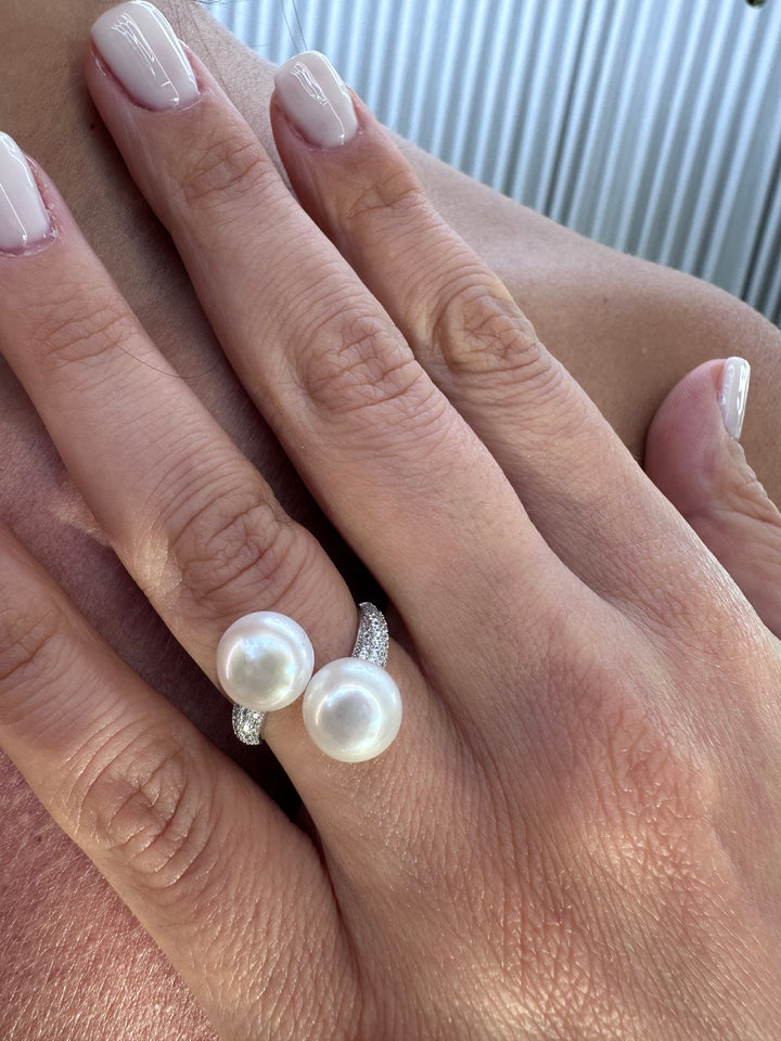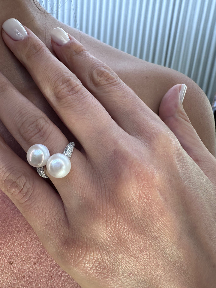 يتميز هذا الخاتم المسطح الاستثنائي بتصميم لؤلؤي أنيق ويمكن تعديله بالكامل.