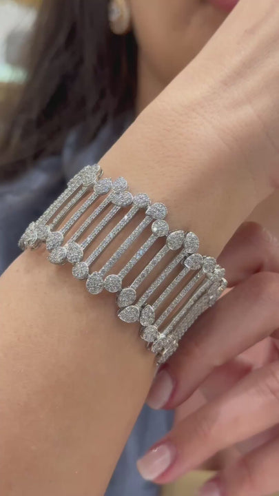 سوار بانغل بيرا الفخم بجودة ممتازة، توريق دقيق بالكامل بأحجار زركون صغيرة، سلسلة روابط كاملة، بانغل عريض وكبير