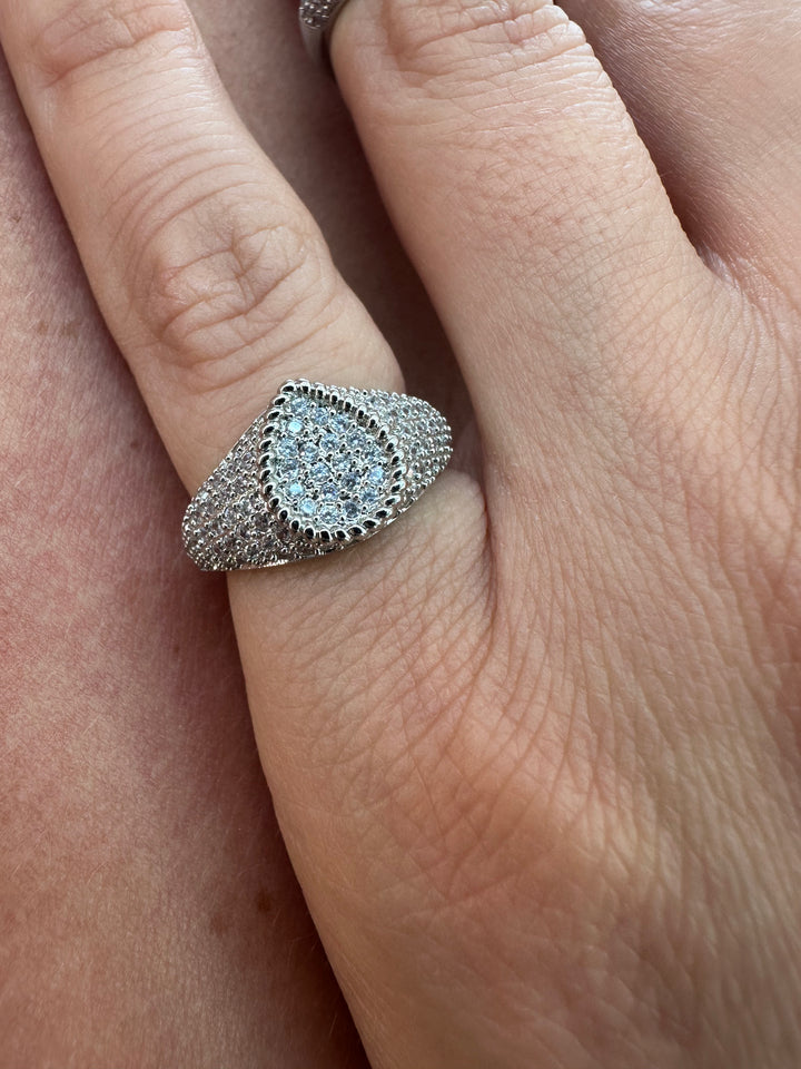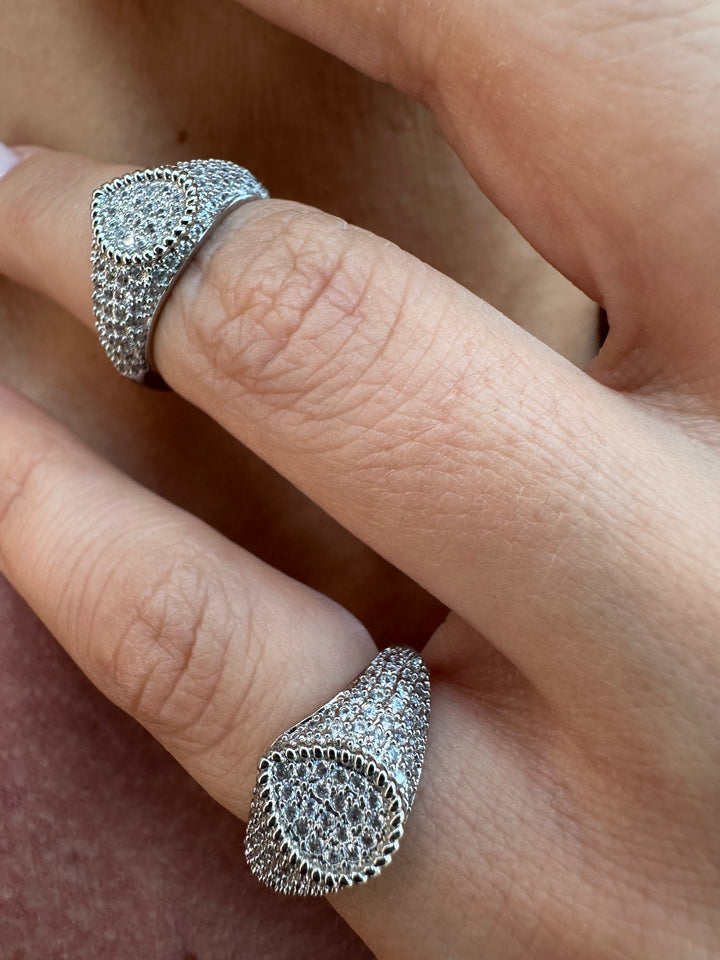 هذا الخاتم الصغير مصنوع من طلاء الفضة، مما يوفر خيار ملحق متين وأنيق لأولئك الذين يبحثون عن لمسة من الأناقة لخزانة ملابسهم.