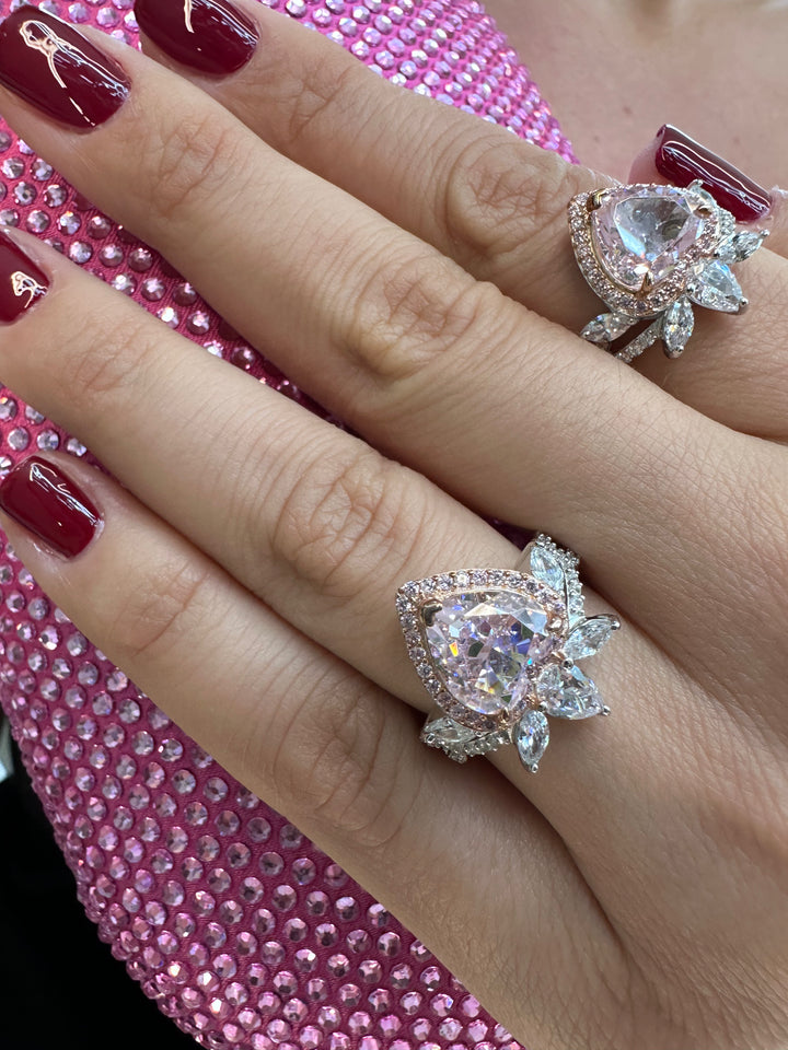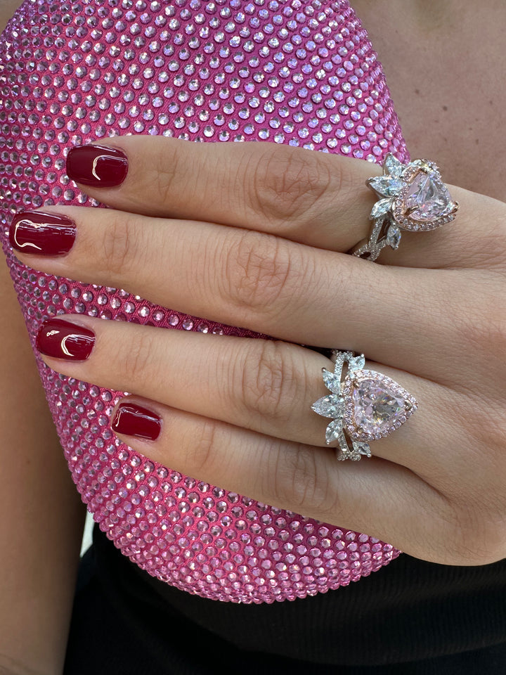 ارتقِ بأناقتك مع خاتم "كوين" الفاخر، المصنوع من أجود أنواع الألماس عالي الكربون المستورد. يتميز هذا الإكسسوار اليومي متعدد الاستخدامات بحجر مويسانيت وردي على شكل حب، وينبض بالرقي والجودة. مثالي للمرأة الأنيقة المواكبة للموضة، التي تُقدّر الجمال الحقيقي.