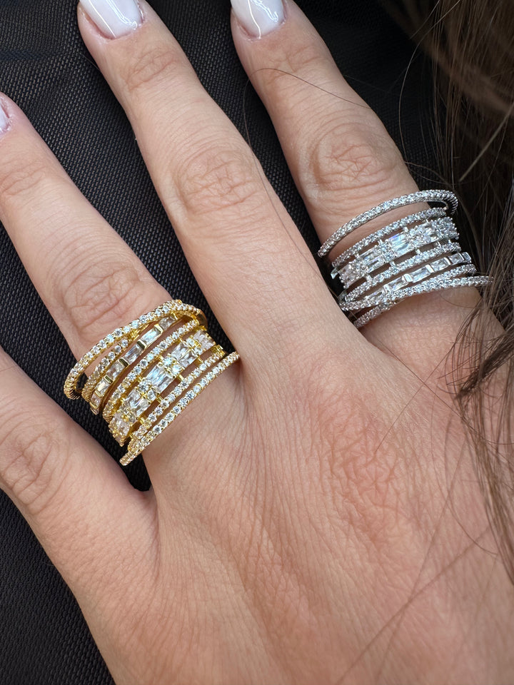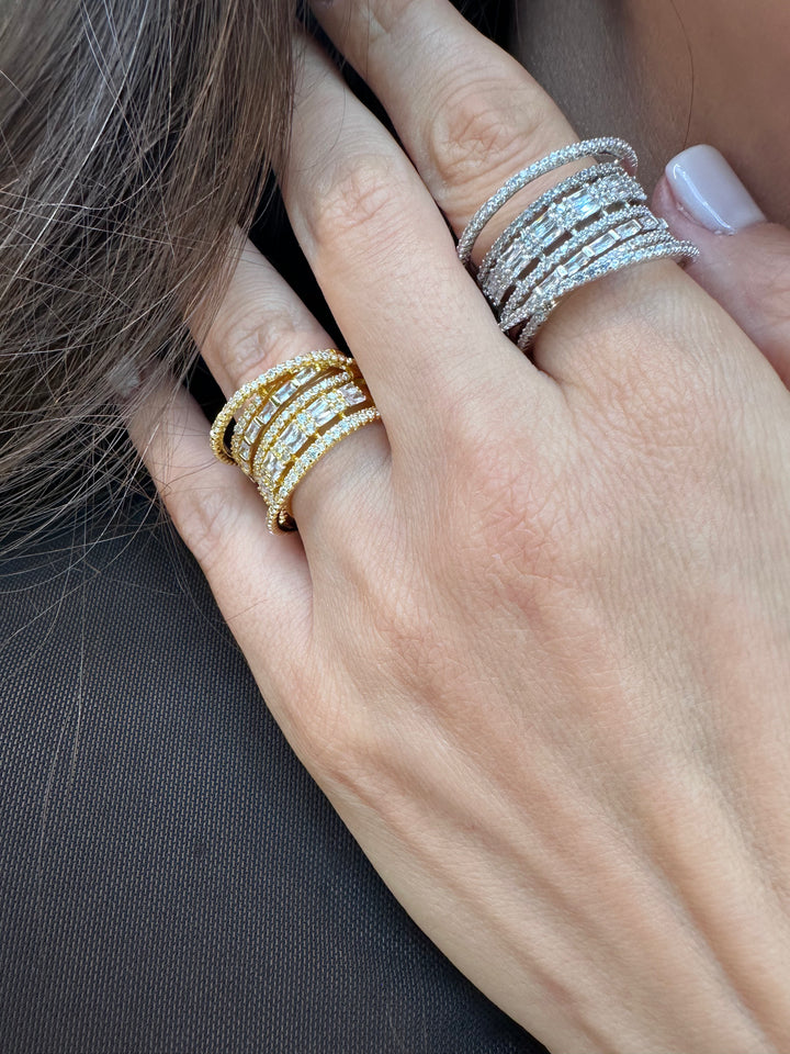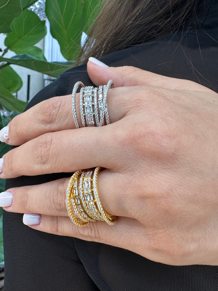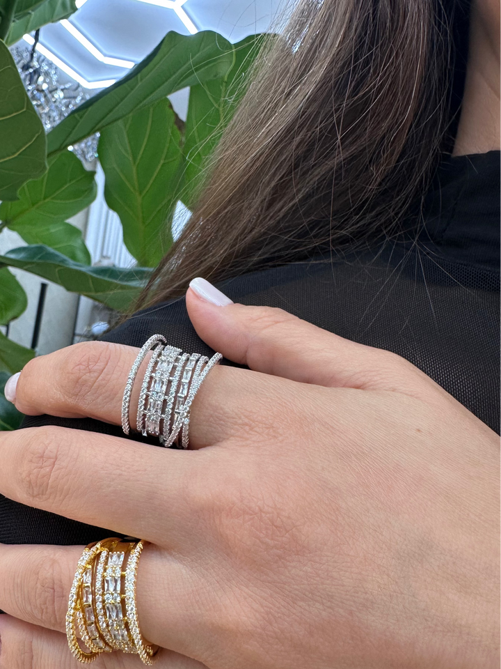 Ring 3 D is available in elegant silver color and gold tones, crafted with exceptional quality. Featuring square zircon accents, it is an exquisite choice for weddings, dinners, and other special events.