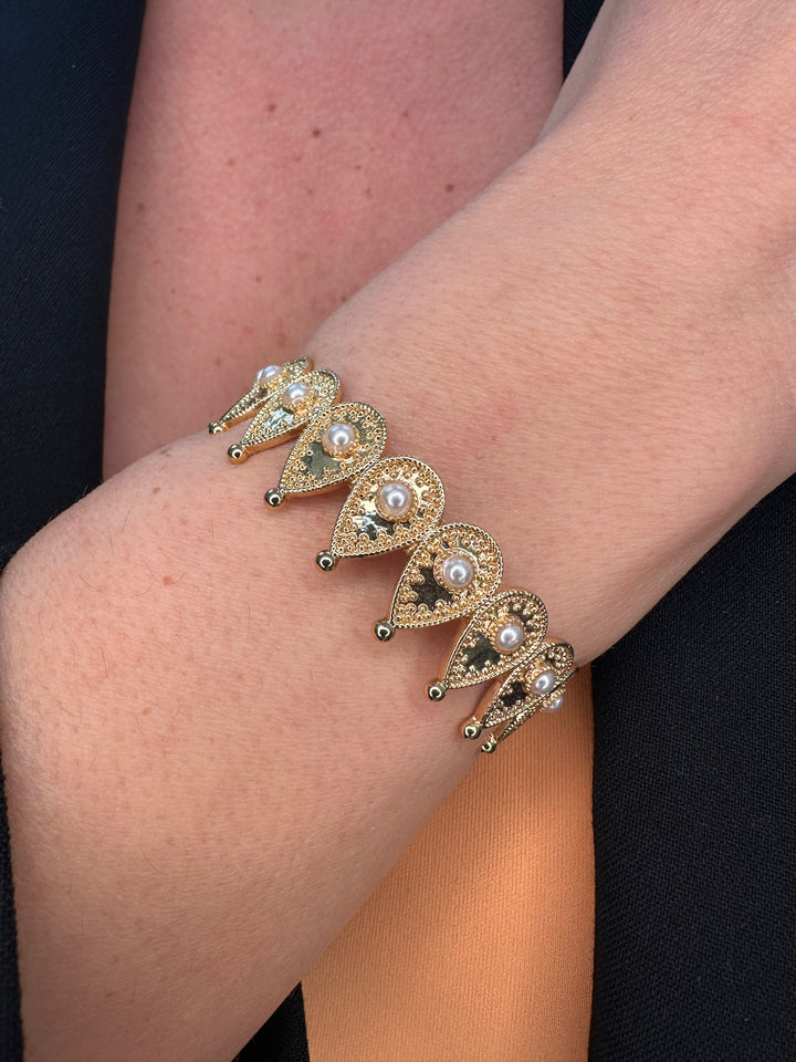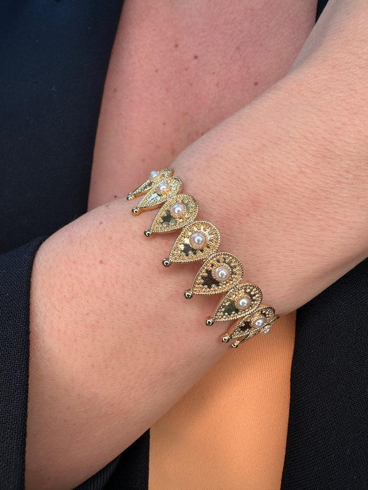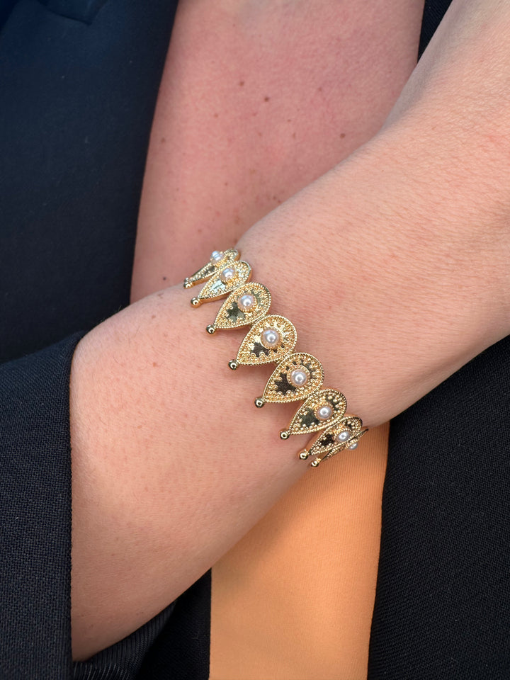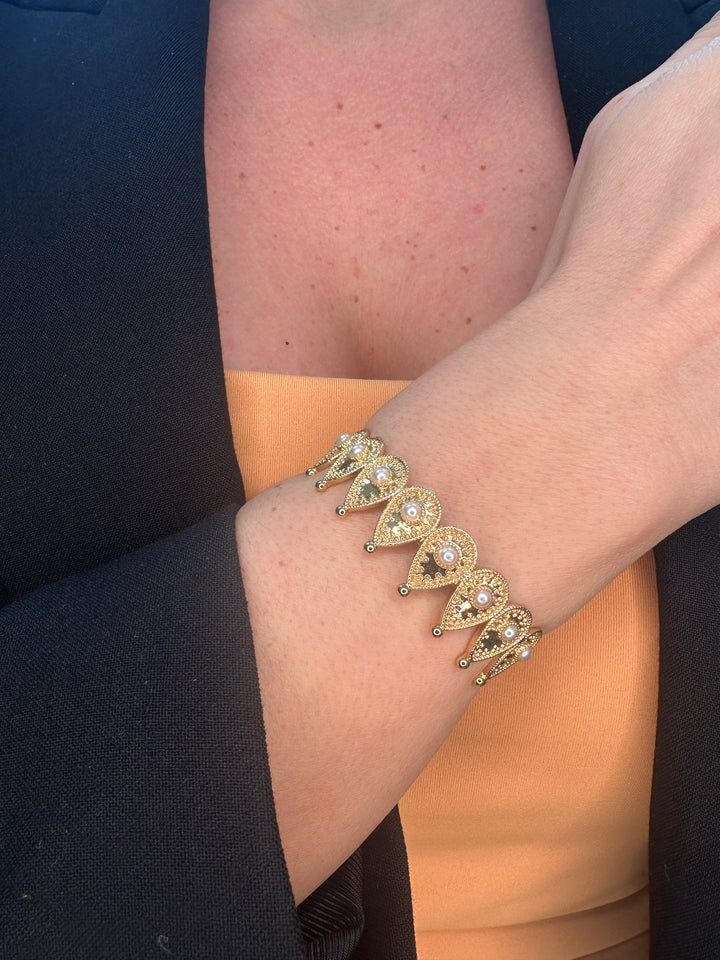 هذا السوار الرائع، المزين بحليّة رقيقة على شكل دمعة، والمتصل بحلقة رائعة، يضفي لمسة من الأناقة والرقي على أي إطلالة. ارتقِ بأسلوبك وأظهري تميزك مع هذا الإكسسوار الفريد الذي يرمز إلى جمال الدموع وقوتها.