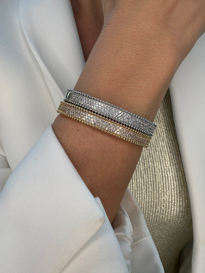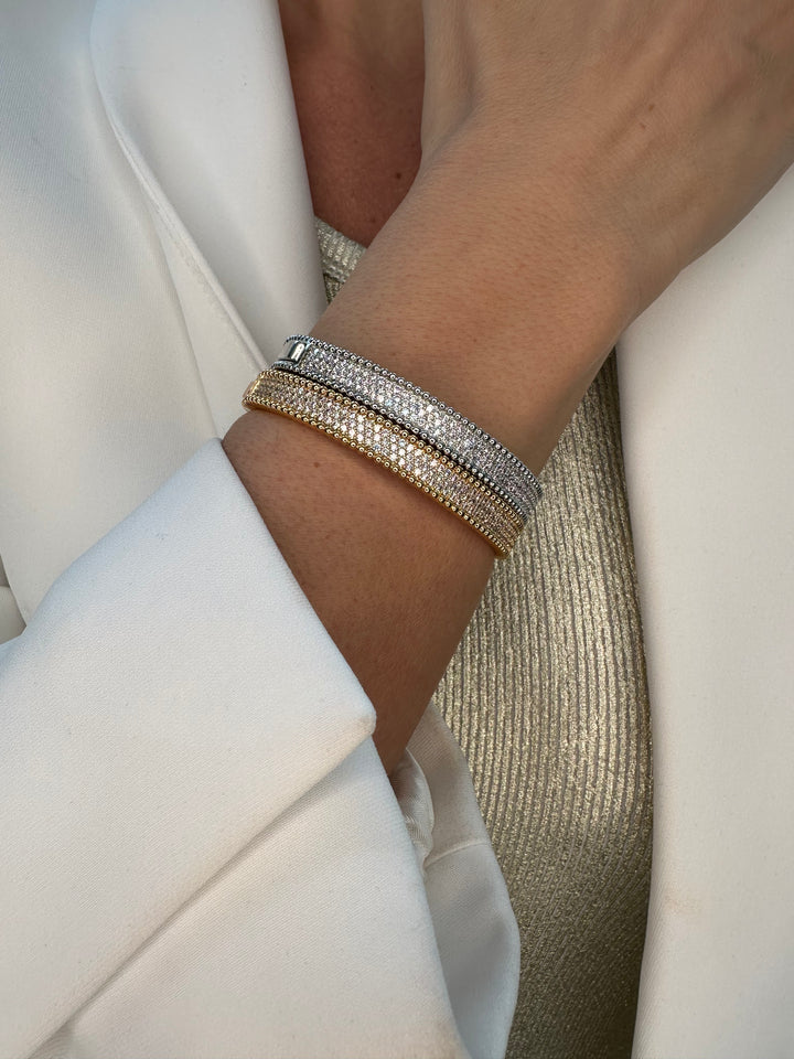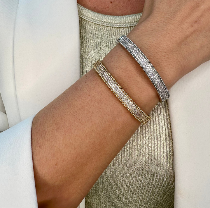 Tennis bangle is silver-plated and crafted with exceptional quality, featuring sparkling cubic zirconia stones for a brilliant shine. Available in both silver and gold plating, it offers a refined choice for elegant accessorizing.it comes as a set bangle with ring