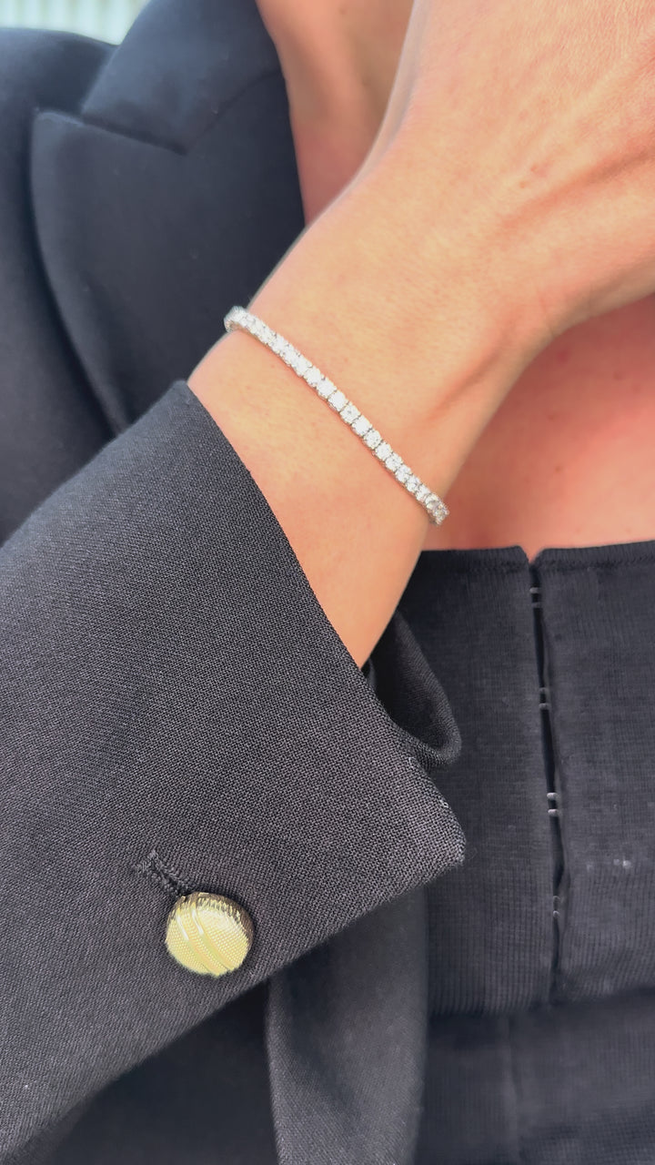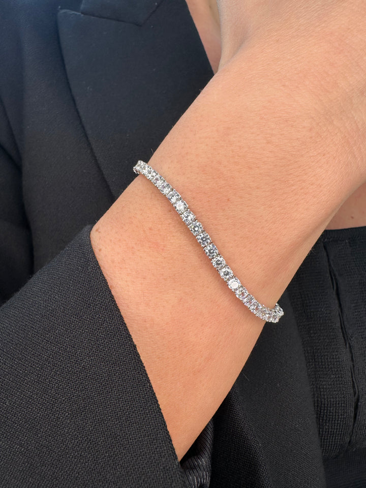 استمتعي بالأناقة الخالدة مع سوار التنس 3 مم. صُنع هذا السوار بعناية فائقة بتصميم رقيق ومذهل، ليُجسّد الفخامة والرقي. إنه الإكسسوار المثالي لجميع المناسبات، ويُضفي لمسةً من الأناقة على أي إطلالة.