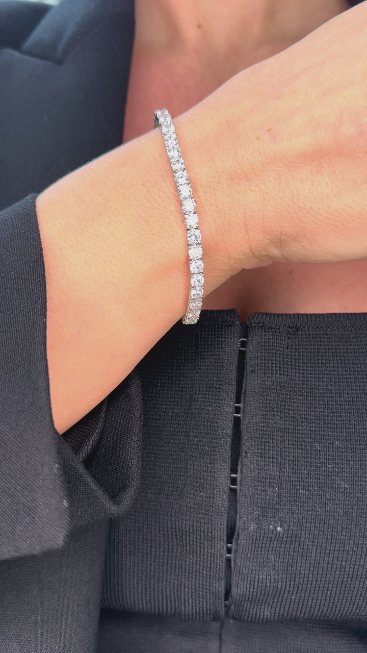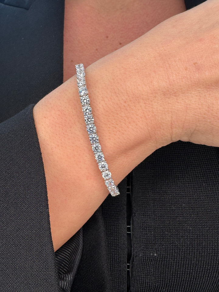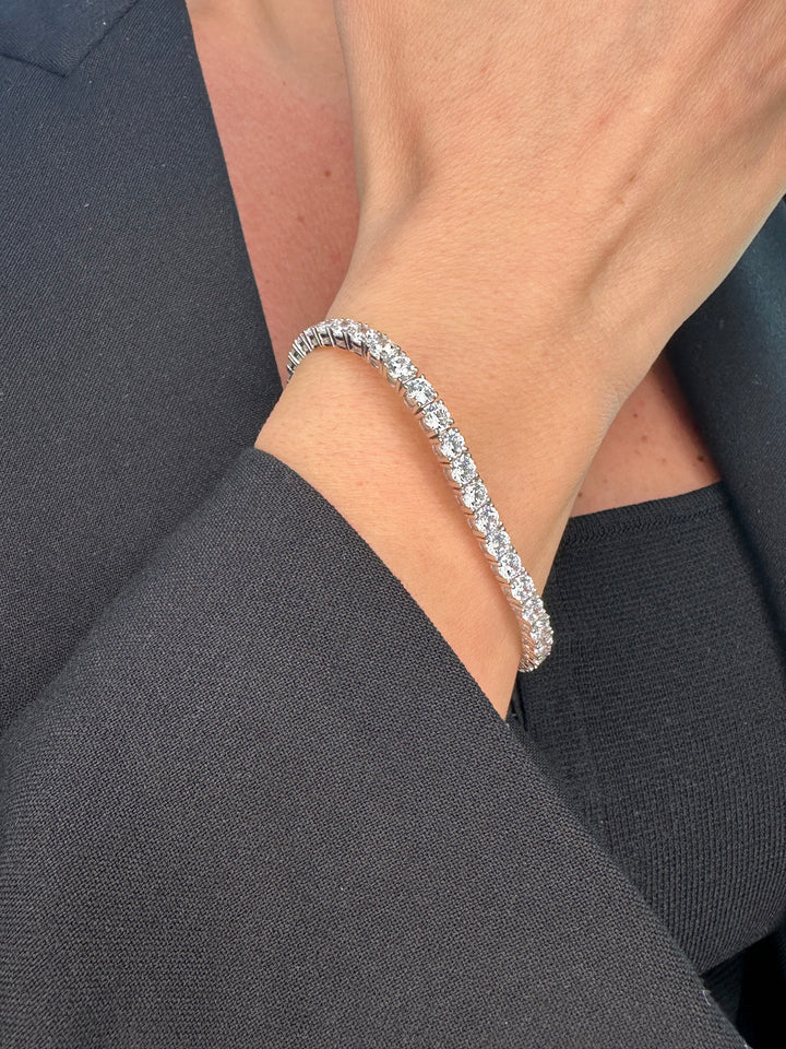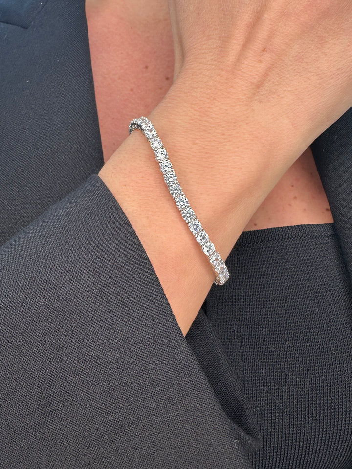 استمتعي بالأناقة الخالدة مع سوار التنس بقطر 4 مم. بفضل تصميمه الرقيق وحرفيته المتقنة، يُعد هذا السوار الإكسسوار المثالي لأي مناسبة. عززي أناقتكِ وأضيفي لمسة من الفخامة إلى خزانة ملابسكِ مع هذه القطعة الأساسية.