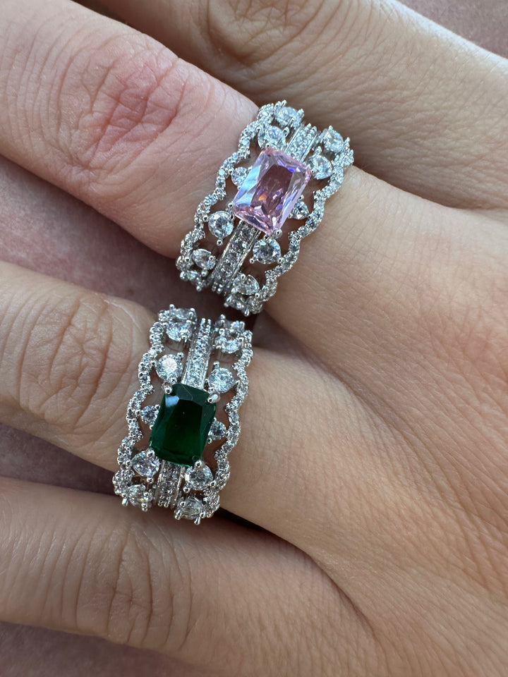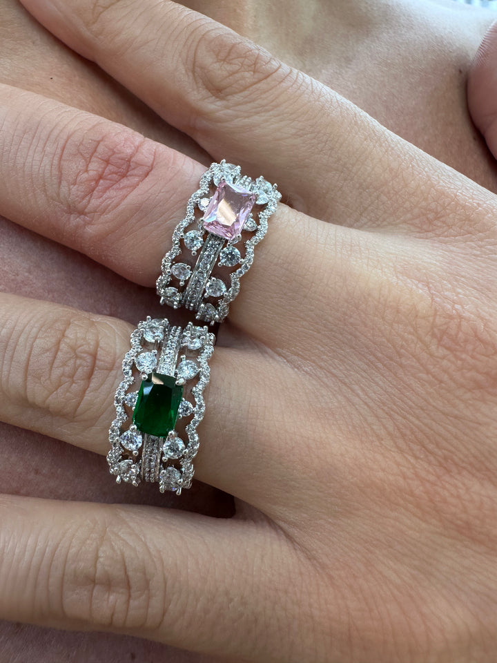 استمتعي بسحر خاتمنا الأخضر العتيق الخالد. بتصميمه الأنيق ولونه الزمردي الغني، ينضح هذا الخاتم بالرقي والتميز. مثالي لإضافة لمسة من السحر العتيق إلى أي إطلالة.