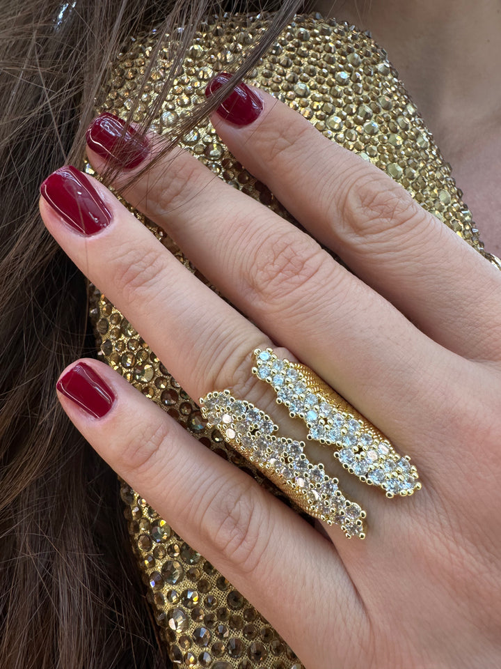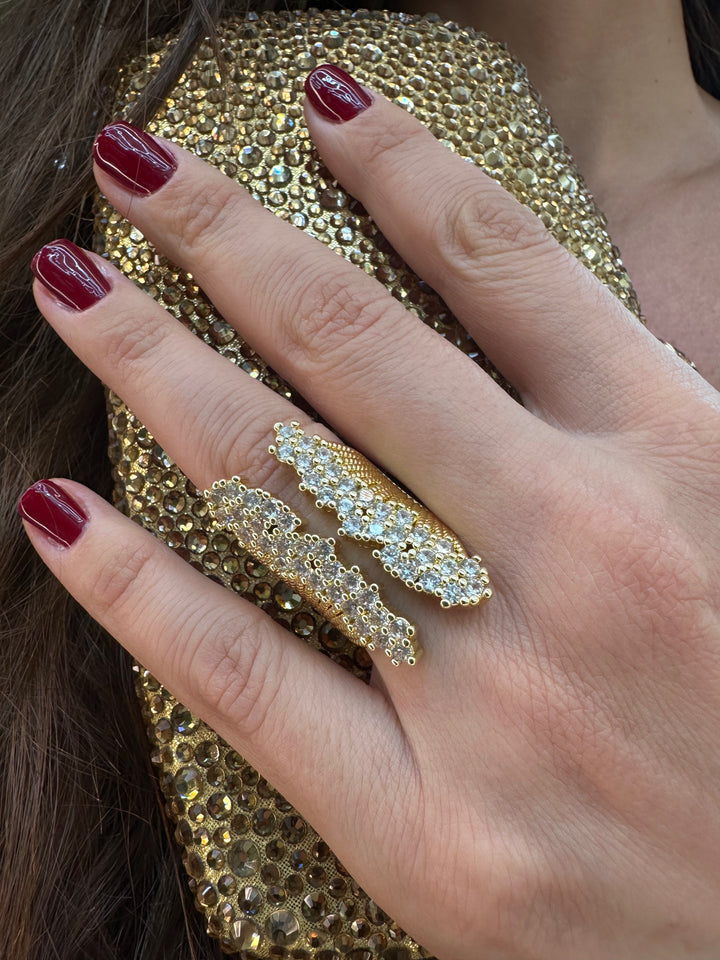 This elegant wavy long ring features a lustrous gold plating and exceptional shine. Crafted with premium quality materials, it offers an adjustable size for a perfect fit.