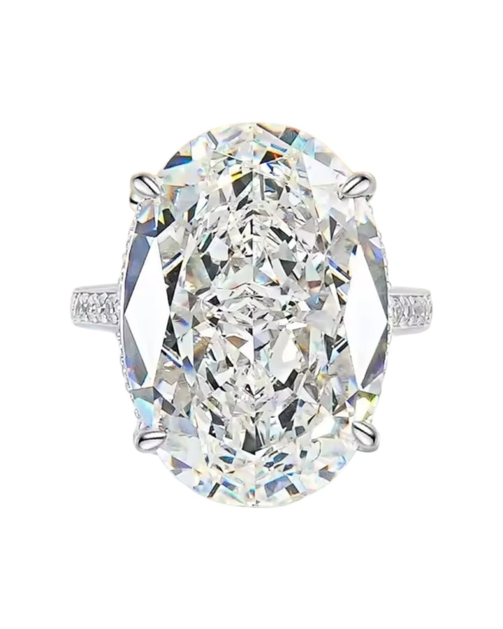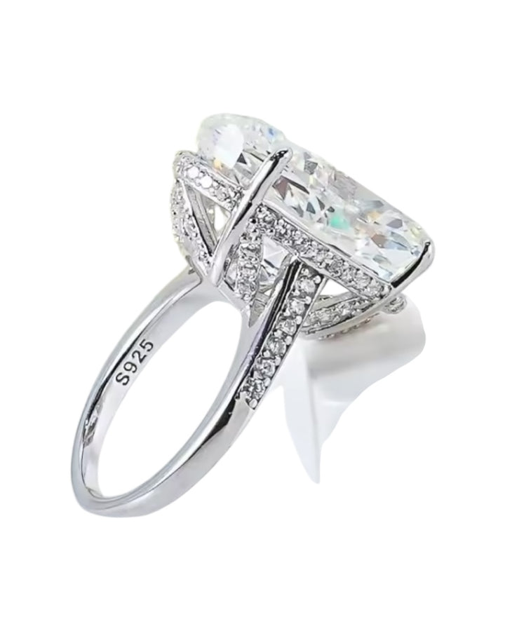 Indulge in the opulent elegance of the Lopez ring, featuring a massive 20ct lab diamond set in 100% pure silver. This vintage-inspired piece exudes luxury and sophistication, making it the perfect engagement ring for the modern woman.