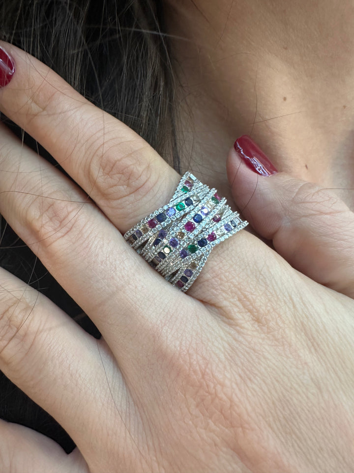 Elevate your style with our striking multicolor big silver ring. Crafted with a bold design, this ring exudes luxury and sophistication. The combination of vibrant colors and sleek silver makes it a statement piece that will elevate any outfit. Stand out and make a statement with our exclusive ring.