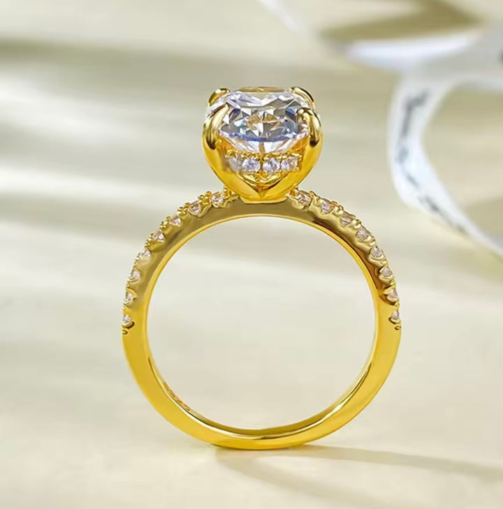 Elevate your collection with this refined sapphire ring, crafted from 925 sterling silver with luxurious 18K gold plating. The stunning 8x12mm oval-cut lab sapphire gemstone radiates timeless elegance, making it an ideal choice for weddings, engagements, or as a meaningful personal treasure. This sophisticated piece combines exceptional craftsmanship with enduring beauty.